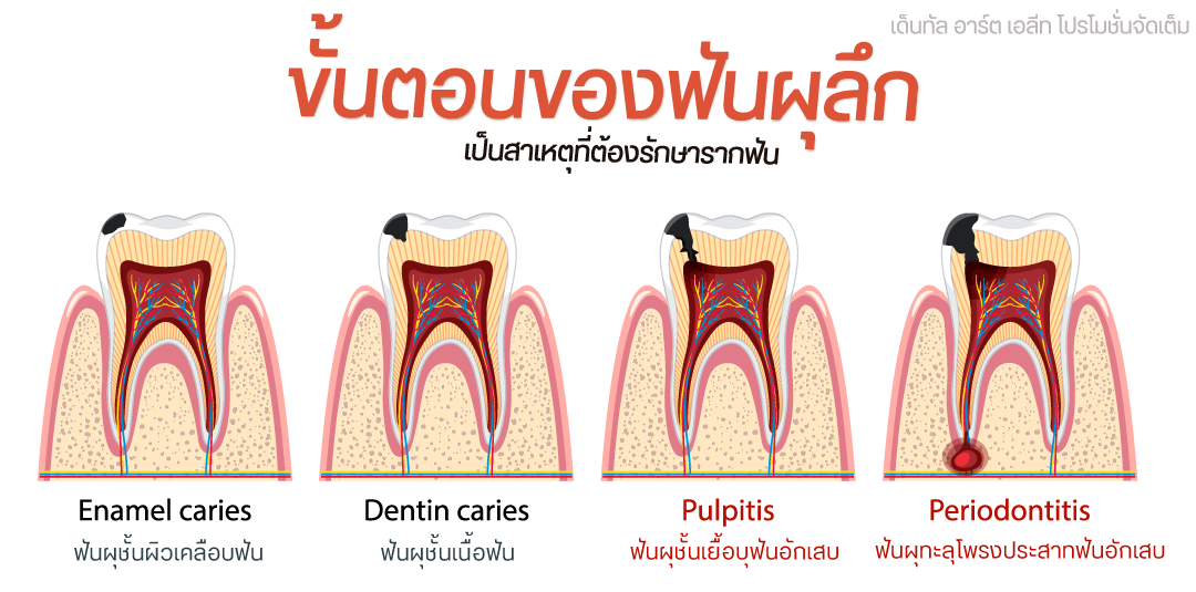 ความรู้สึกเจ็บนั้นจะขึ้นอยู่กับปริมาณรอยโรค และการอักเสบของเนื้อเยื้อภายในฟัน คุณหมอจะใช้ยาชาร่วมด้วยเพื่อบรรเทาอาการเจ็บ ปวด ในระหว่างการรักษา แต่เมื่อเข้าสู่ขั้นตอนการรักษาแล้ว อาการเหล่านี้จะค่อย ๆ ดี ขึ้นตามลำดับ